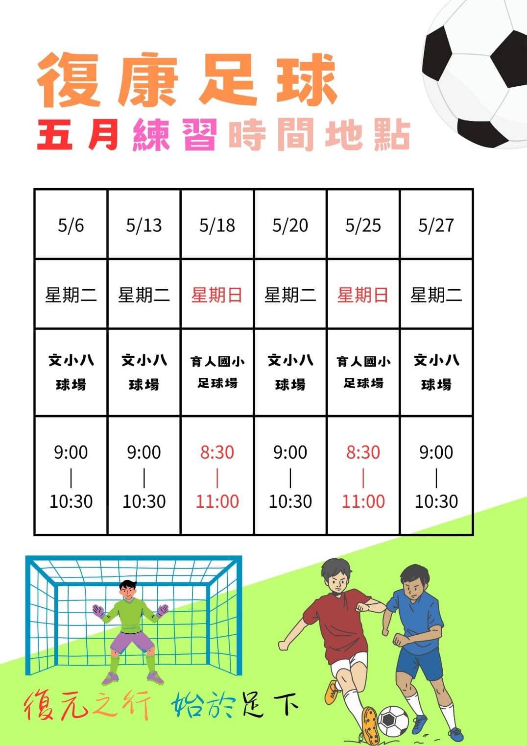 復康足球【5月練習時間】